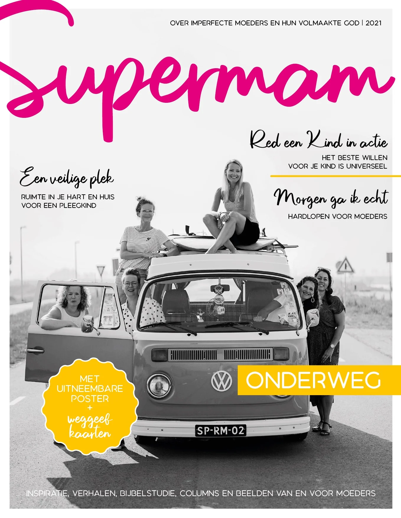 Supermam – Onderweg zit boordevol inspiratie, verhalen, heerlijke recepten, columns, gratis weggeefkaarten van Zo Joann en een prachtige poster met tekst van Huisje van goud. Met mode-ideeën, getuigenissen en doordenkertjes. Sommige pagina’s zullen een lach op je gezicht toveren, vanwege de herkenbare moeder-kindgebeurtenissen of de zelfspot en humor als je je eigen zwakke plek herkent. Maar in het magazine staan ook interviews met vrouwen die moeilijke vragen hebben. In dit nummer ook een prachtig verhaal in samenwerking met Red een Kind.