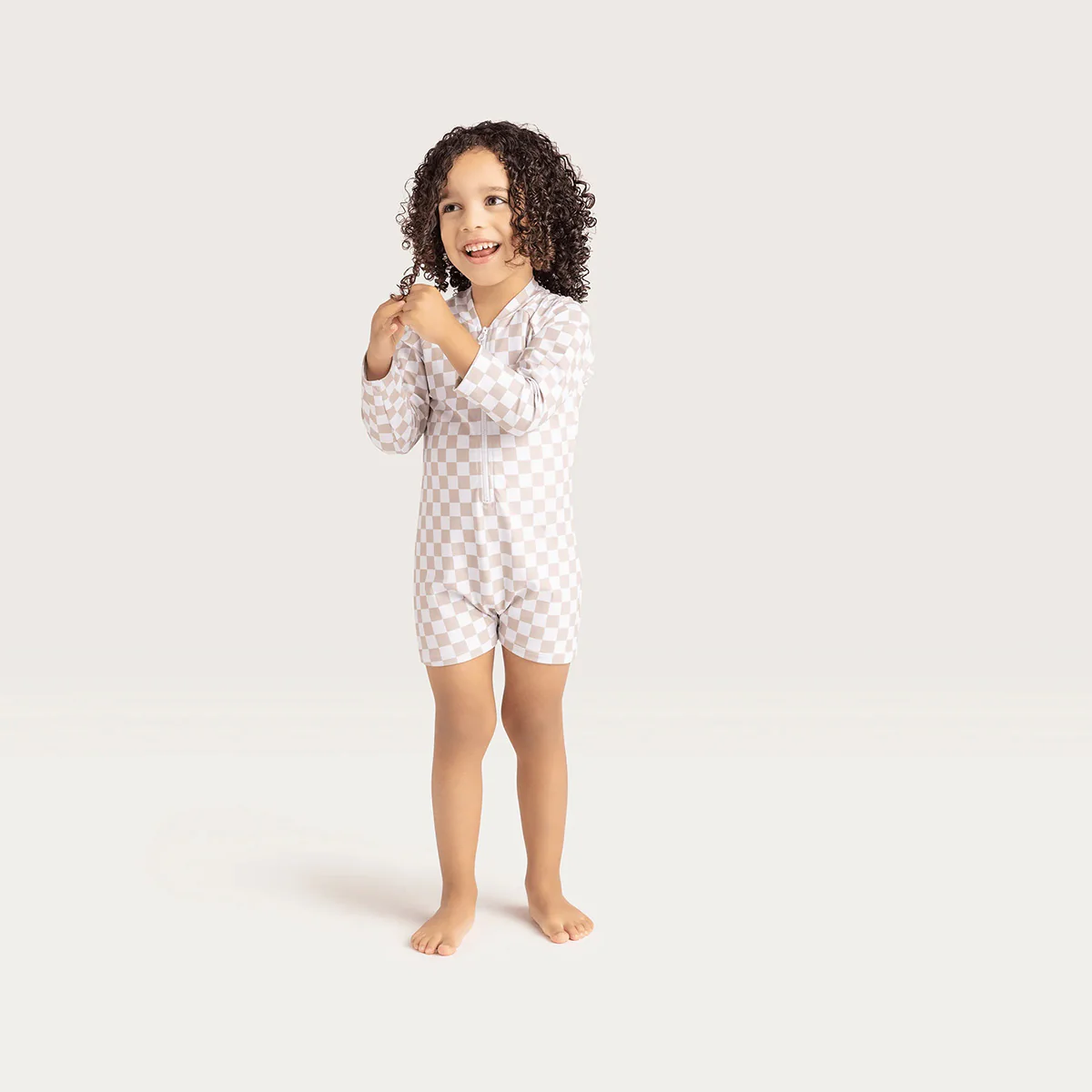 Kortom, bij dit zwempak komen stijl, bescherming en comfort samen. Laat jouw kleintje stralen in het UV Zwempak Sand Check met zijn unieke tijdloze print.