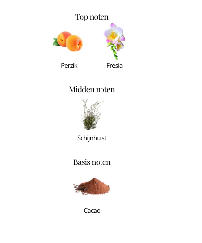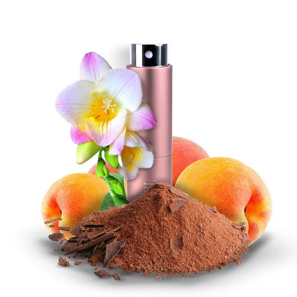 De gehele olfactorische pyramide, het sillage die gegradeerd is als midden, en de duidelijkst waarneembare geurnoten perzik, fresia, cacao, maken dit een parfum die perfect is voor lente, zomer.