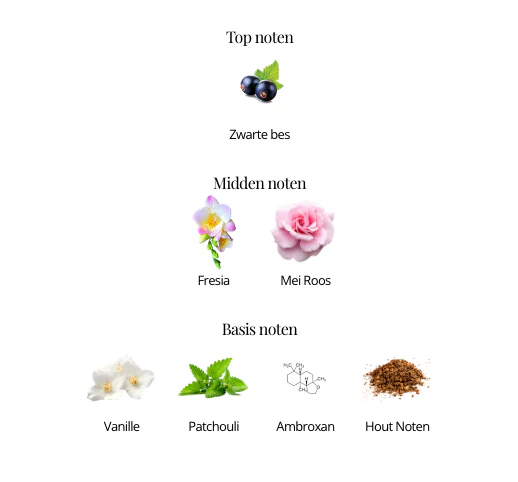 De gehele olfactorische pyramide, het sillage die gegradeerd is als midden, en de duidelijkst waarneembare geurnoten cassis, vanille, , maken dit een parfum die perfect is voor lente, zomer, herfst, winter.