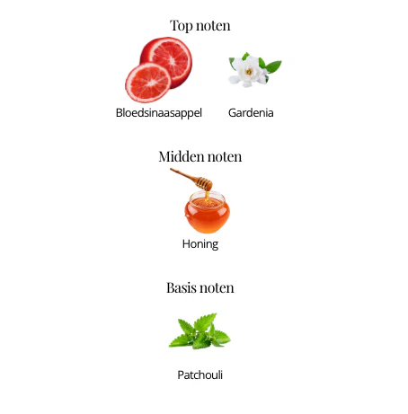 De volgende akkoorden zul je duidelijk ruiken in dit parfum honing, zoet, patchouli, citrusvruchten, witte bloemen.