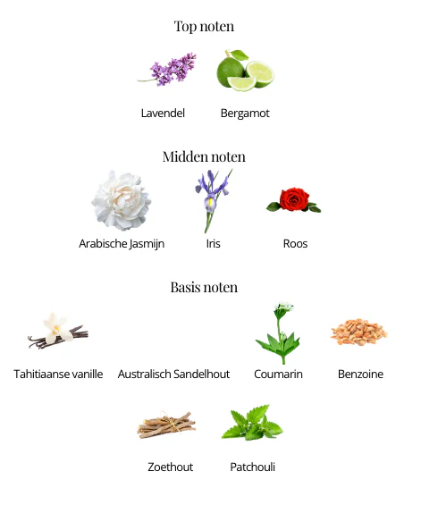 De volgende akkoorden zul je duidelijk ruiken in dit parfum vanille, poederig, aromatisch, bloemig, fris kruidig.