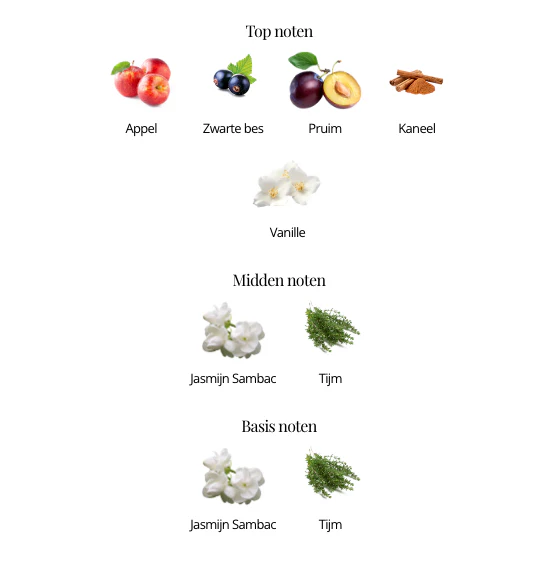 De volgende akkoorden zul je duidelijk ruiken in dit parfum houtachtig, fruitig, vanille, warm kruidig, kaneel, zoet.