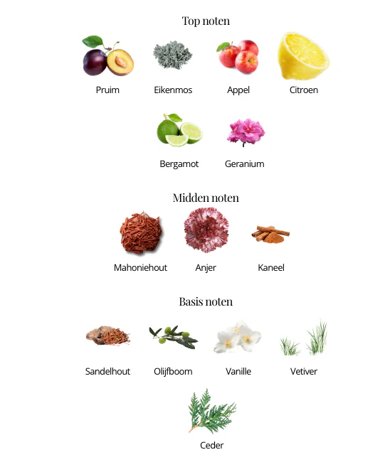 De volgende akkoorden zul je duidelijk ruiken in dit parfum houtachtig, vanille, fruitig, warm kruidig, kaneel.