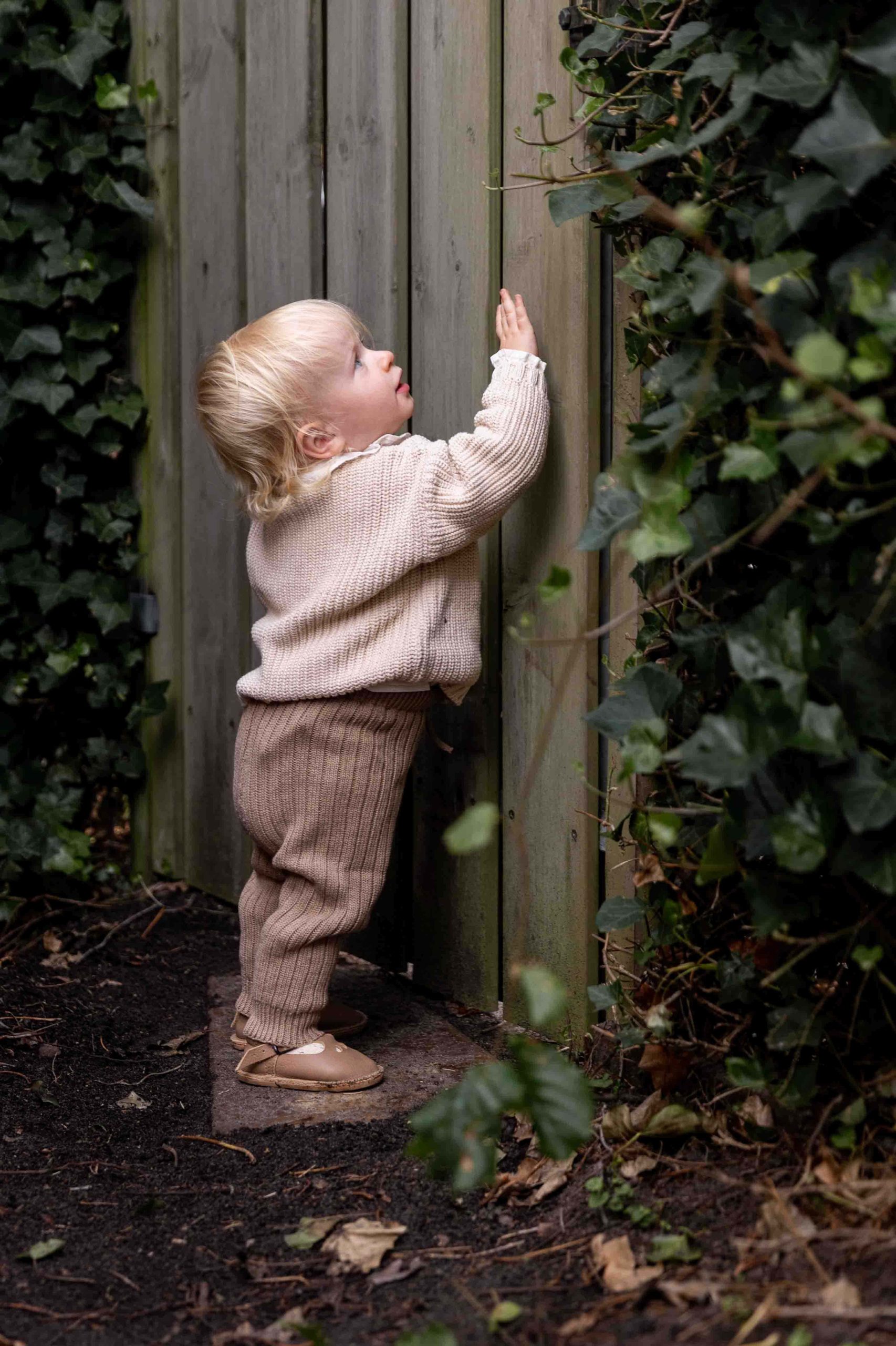 Het gebreide baby vestje valt vrij groot en heeft een oversized pasvorm.