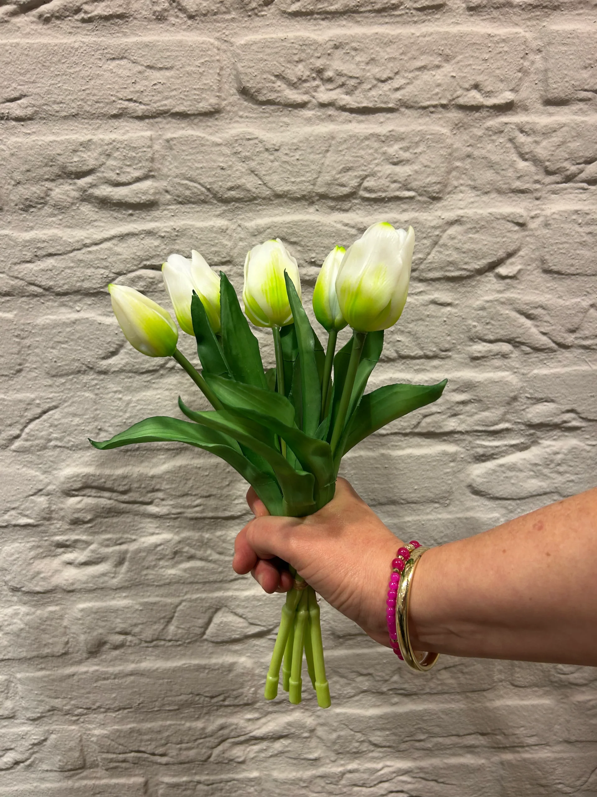 Deze prachtige “real touch” kunst tulpen zijn nét echt! Ze lijken en voelen gewoon net echt, zó gaaf zijn ze. Normaal is een bosje tulpen met een paar dagen al vergaan, maar deze blijven jáááren mooi! Wij zijn verliefd!