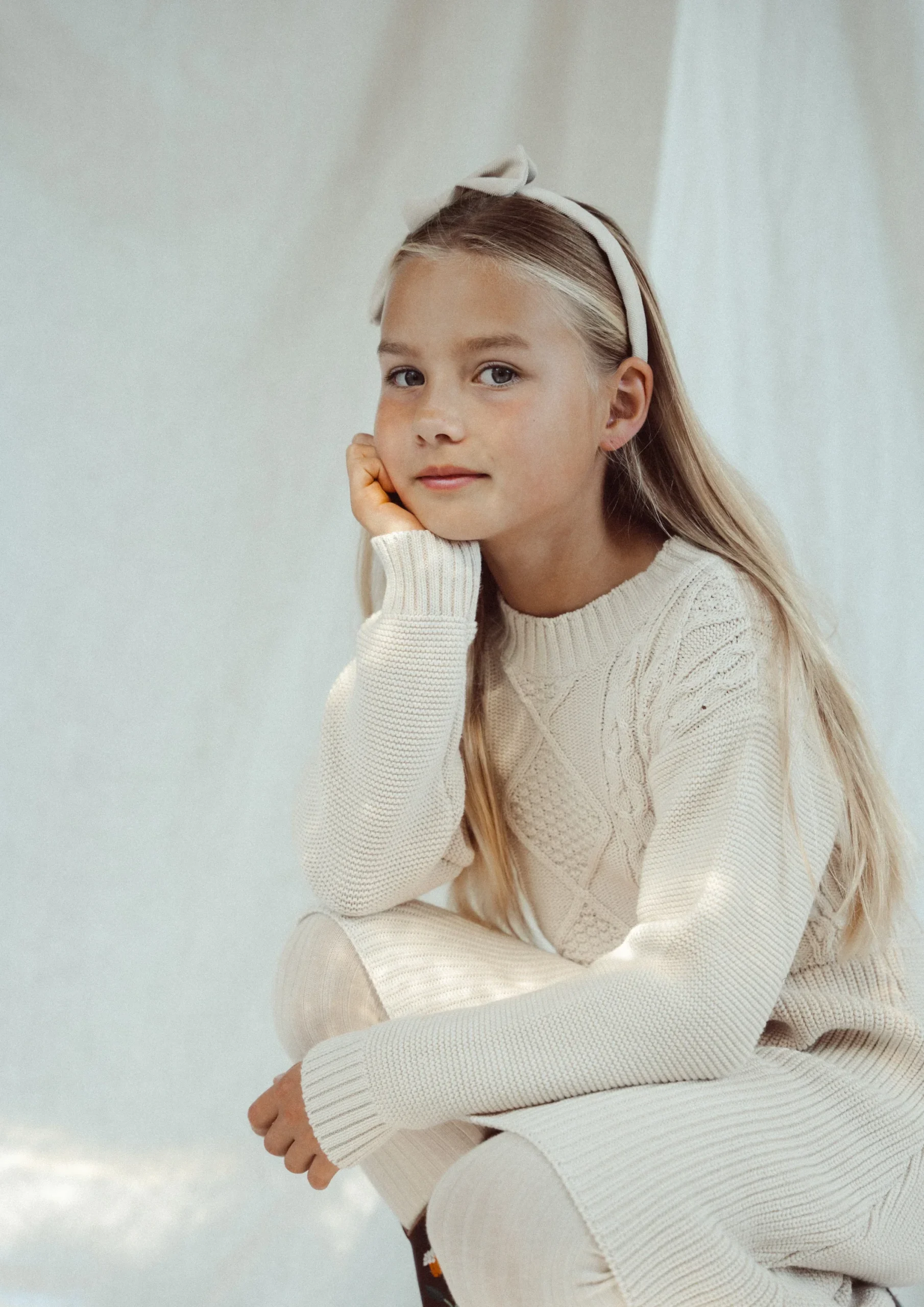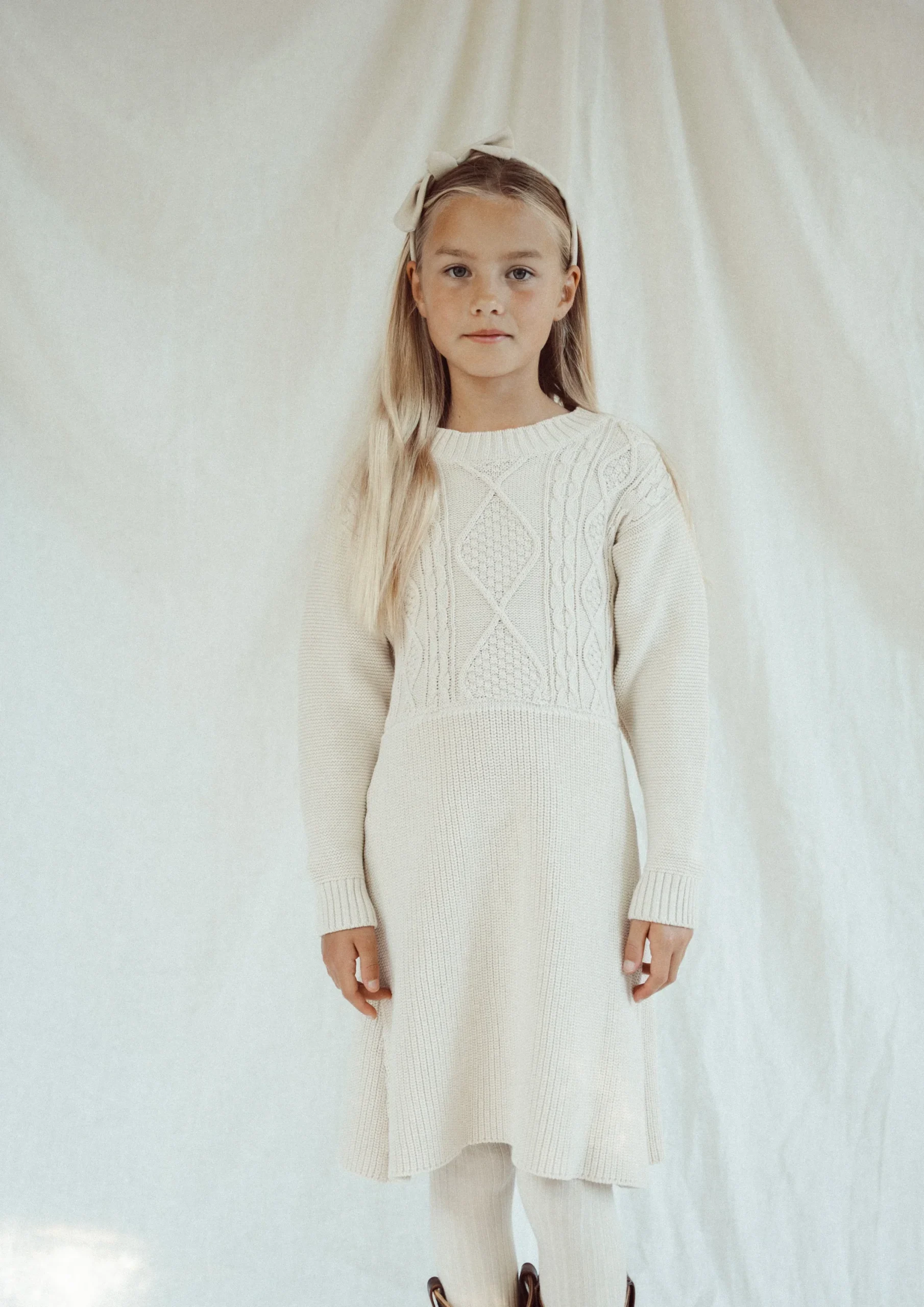 Gebreide jurk uit de Two You Label winter collectie. Mooi kabel patroon op het voorpand en de rest van de jurk is rib gebreid. De jurk heeft een wat langer model, tot de knie. De kleur beach zit tussen offwhite en crème in.
