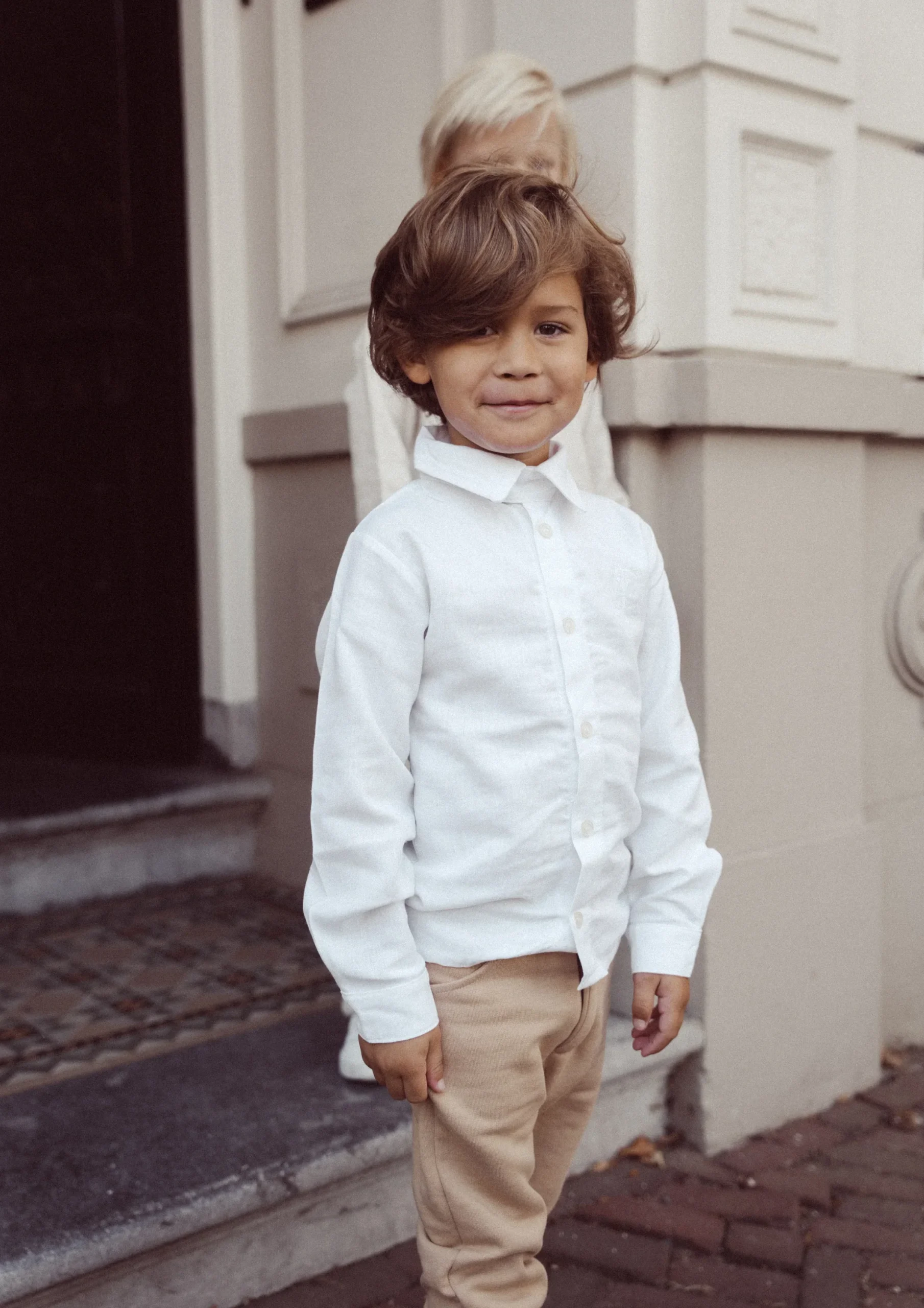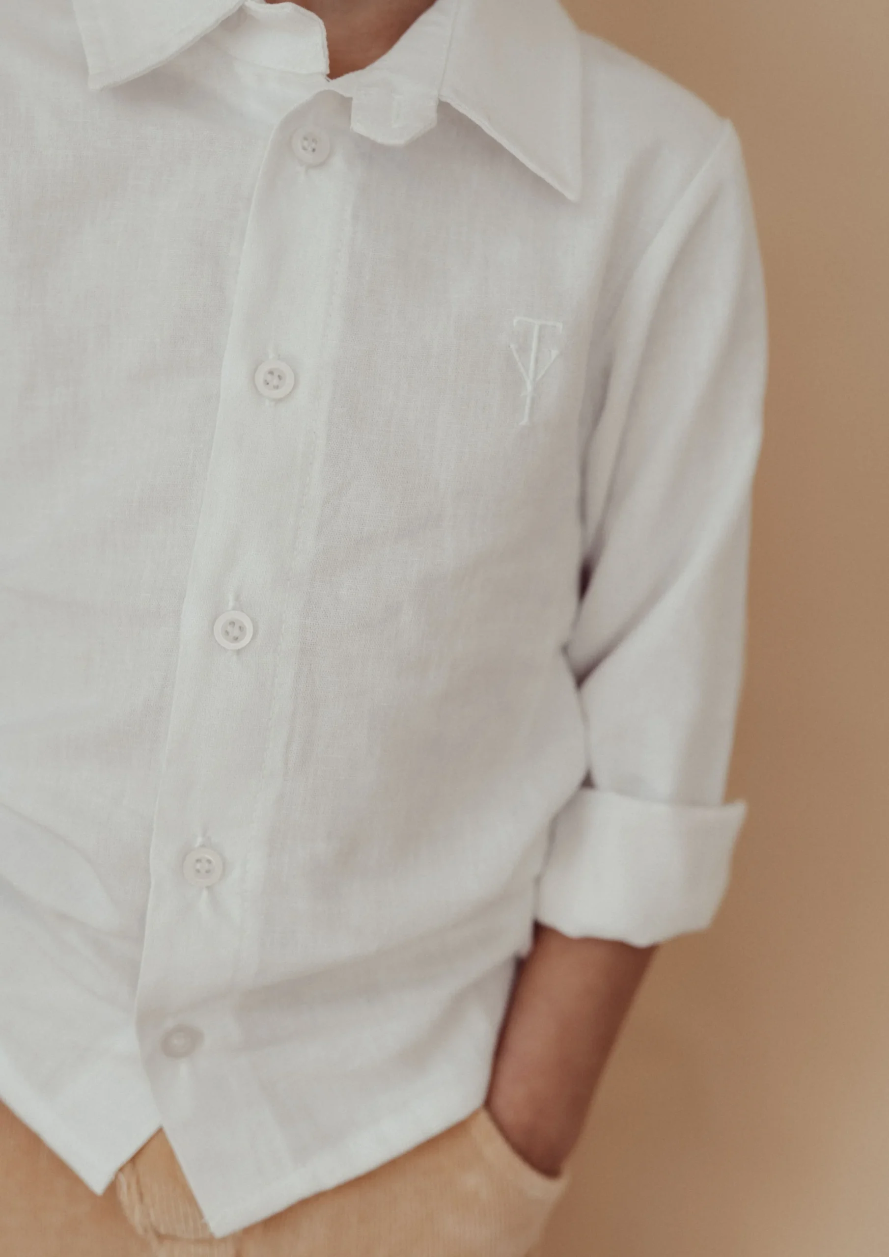 Linnen blouse Milo wit is een fijne basic voor de jongens kledingkast! Een niet seizoensgebonden item van Two You Label, die het hele jaar door mee kan.