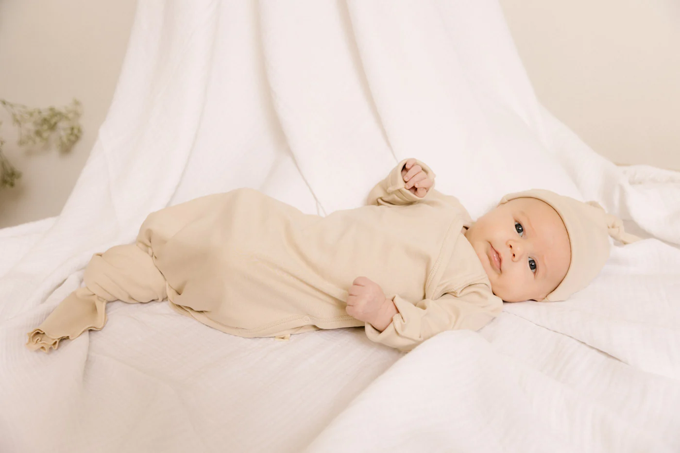 De kimono, of wel cocoon, is een ideale combinatie van een overslag bodysuit en een sleepcocoon. De drukknopen van boven naar beneden maken het aankleden en het verschonen van luiers heel makkelijk. Deze comfortabele kimono met lange mouwen heeft omgeslagen handwanten om krassen met de nageltjes te voorkomen. Heel geschikt voor baby’s eerste weken.