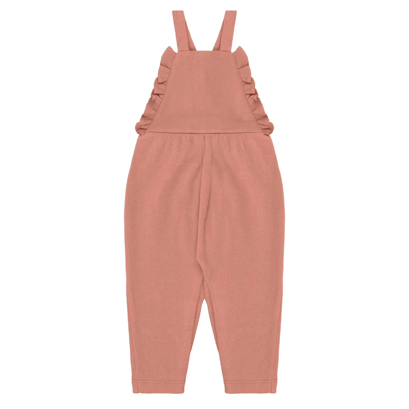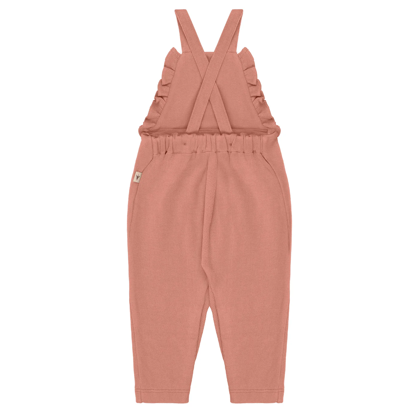 Een fijne tuinbroek gemaakt van het allerzachtste Pima katoen. De tuinbroek heeft schattige ruches aan de voorkant en dat maakt hem echt voor meisjes. De schouderbanden lopen kruislings op de rug, dit voorkomt dat ze van de schouder afzakken. De kleur van deze tuinbroek heet ‘rosas’ en dit is een (oud)roze tint. De tuinbroek voor meisjes is ook beschikbaar in de kleuren caramel en offwhite.