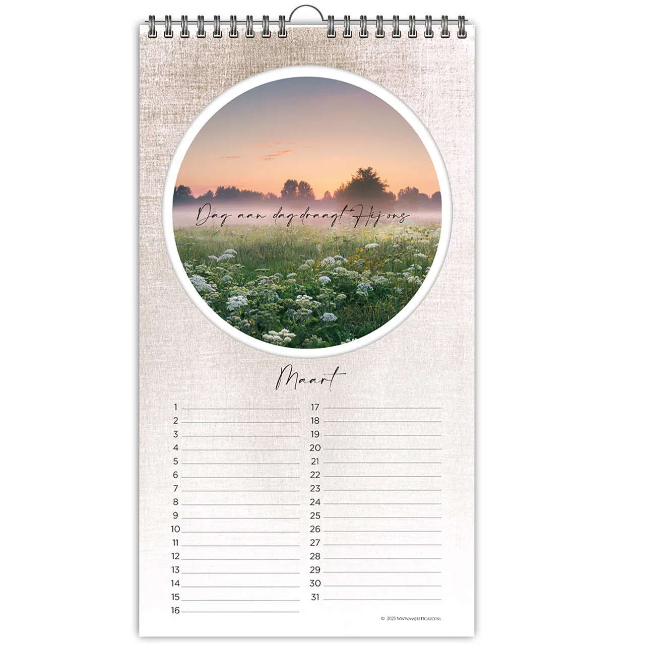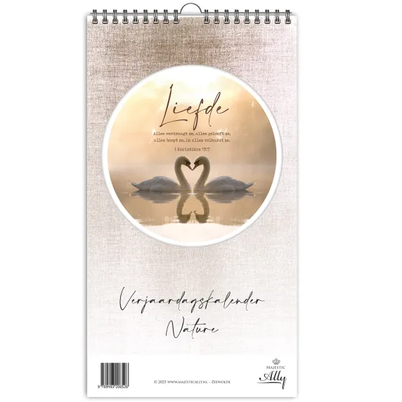 De afmetingen van deze kalender zijn 16,5 x 30 cm en de kalender is voorzien van ringen en een handig ophanghaakje. De maandindeling biedt voldoende schrijfruimte en is duidelijk overzichtelijk. De afbeeldingen uit deze kalender, zijn ook beschikbaar in de categorie ‘cirkelcadeau’. Klik hier om deze kaartenserie te bekijken