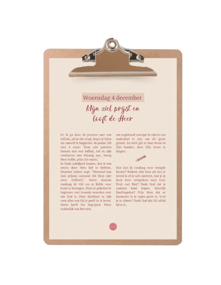 • Het Villavie adventplan met daarop voor elke adventdag iets om te lezen, een lied of een kleine reflectievraag