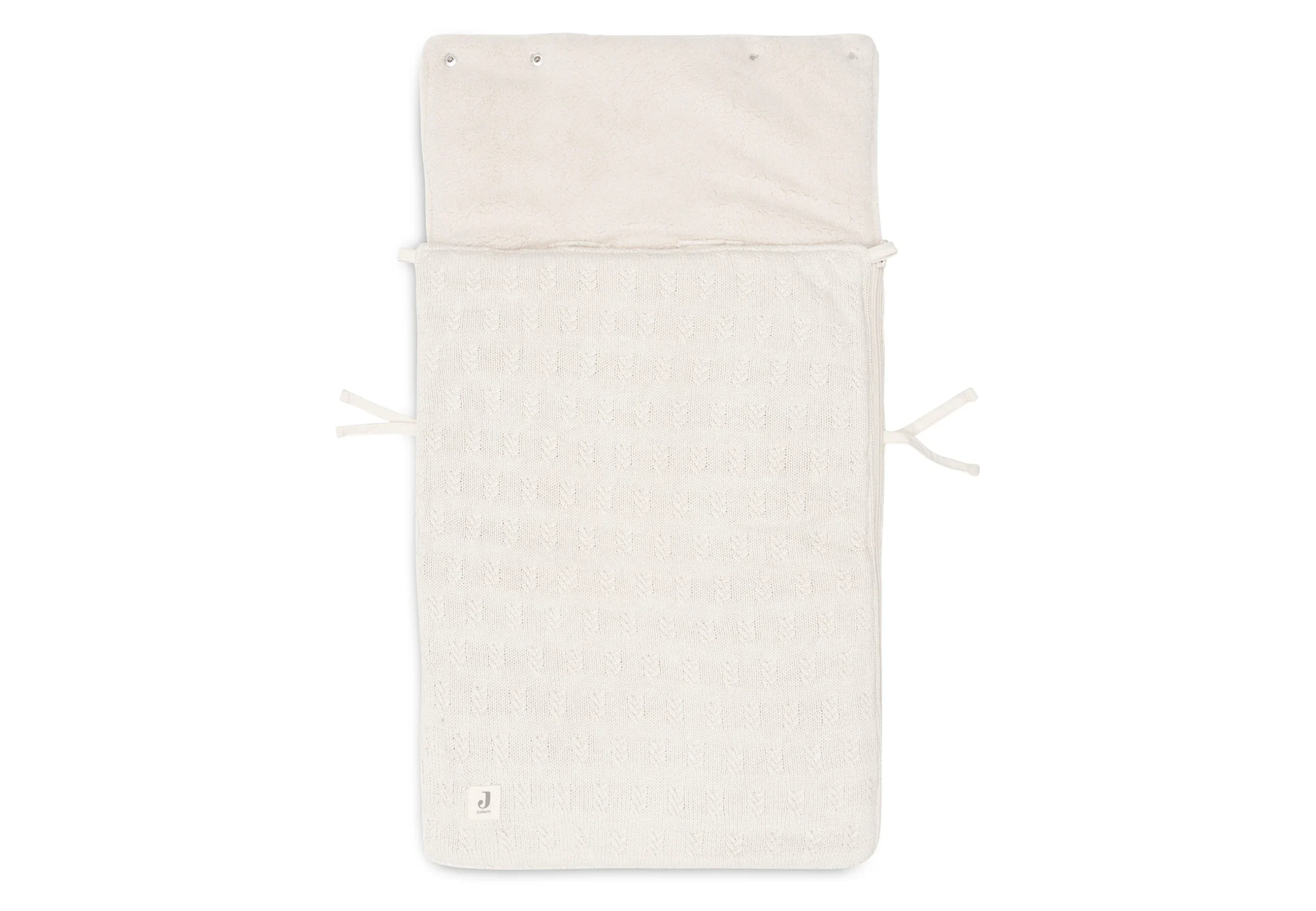De gebreide stof aan de buitenkant van deze voetenzak geeft het een chique uiterlijk en de ultrazacht fleece aan de binnenzijde zorgt er voor dat je baby er comfortabeler en warm bij ligt.