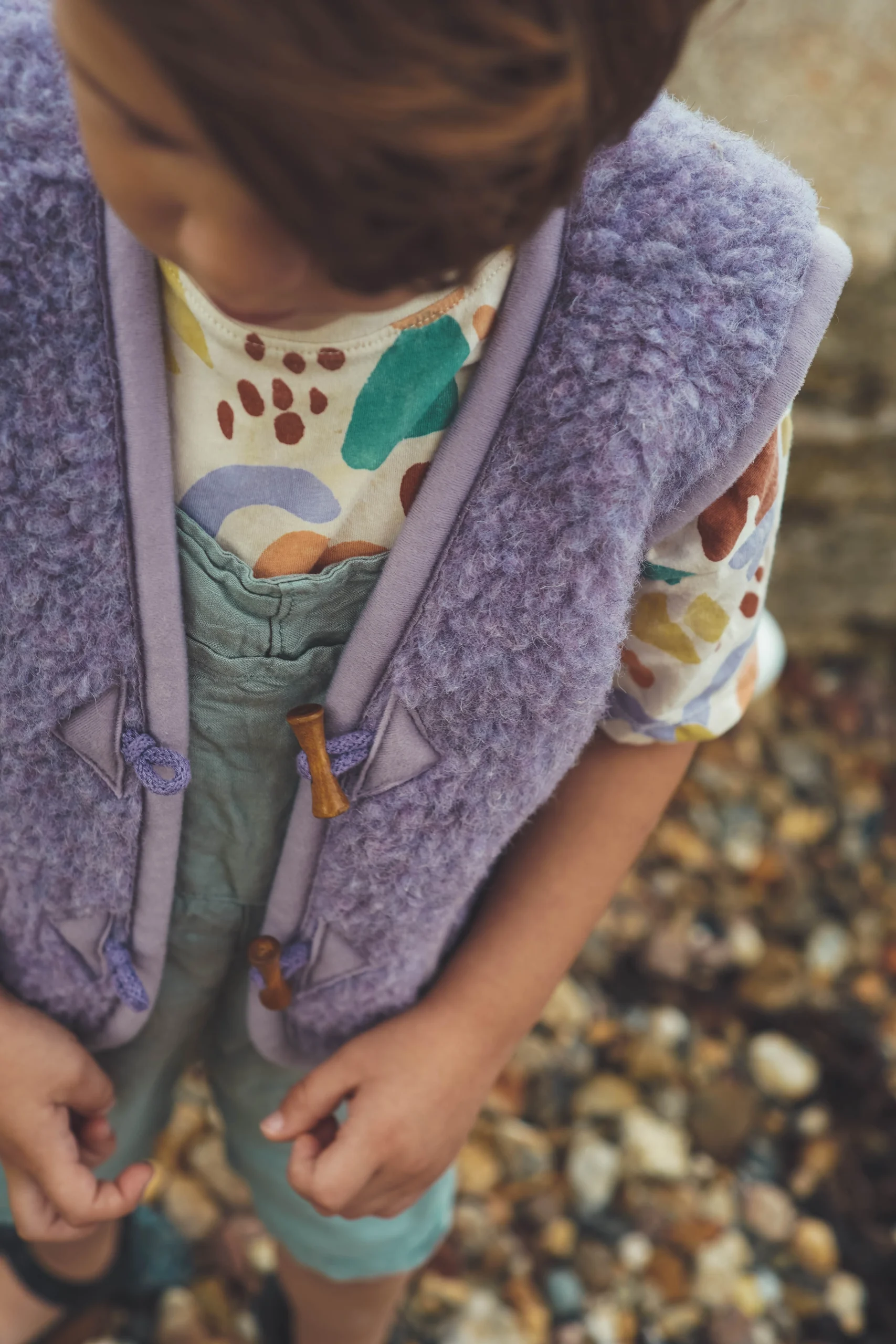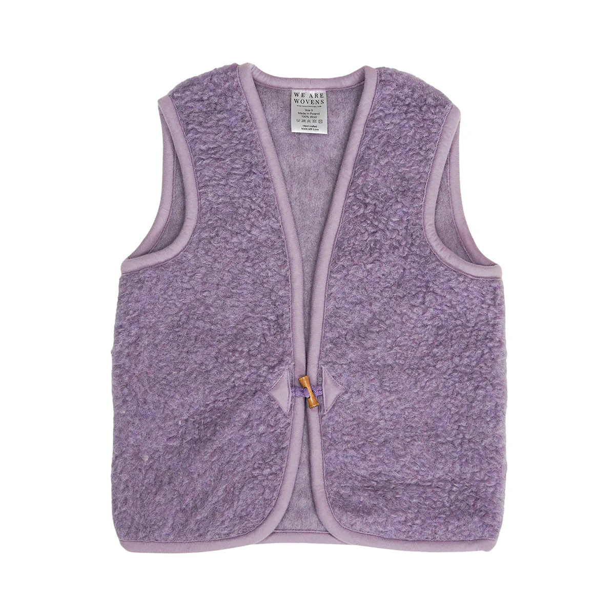 Lila is momenteel een hele hippe kleur. Wat fijn dat de populaire wollen bodywarmer van We Are Wovens nu ook in deze kleur beschikbaar is. Bodywarmer Lilac bestaat uit 100% zuivere merino wol. De bodywarmer is handgemaakt. De gebruikte wol komt bij kleine boerderijen vandaan, waar de schapen vrij rond mogen lopen. Dit duurzame kledingstuk voor jouw kleintje past in elke garderobe, ongeacht kledingstijl.