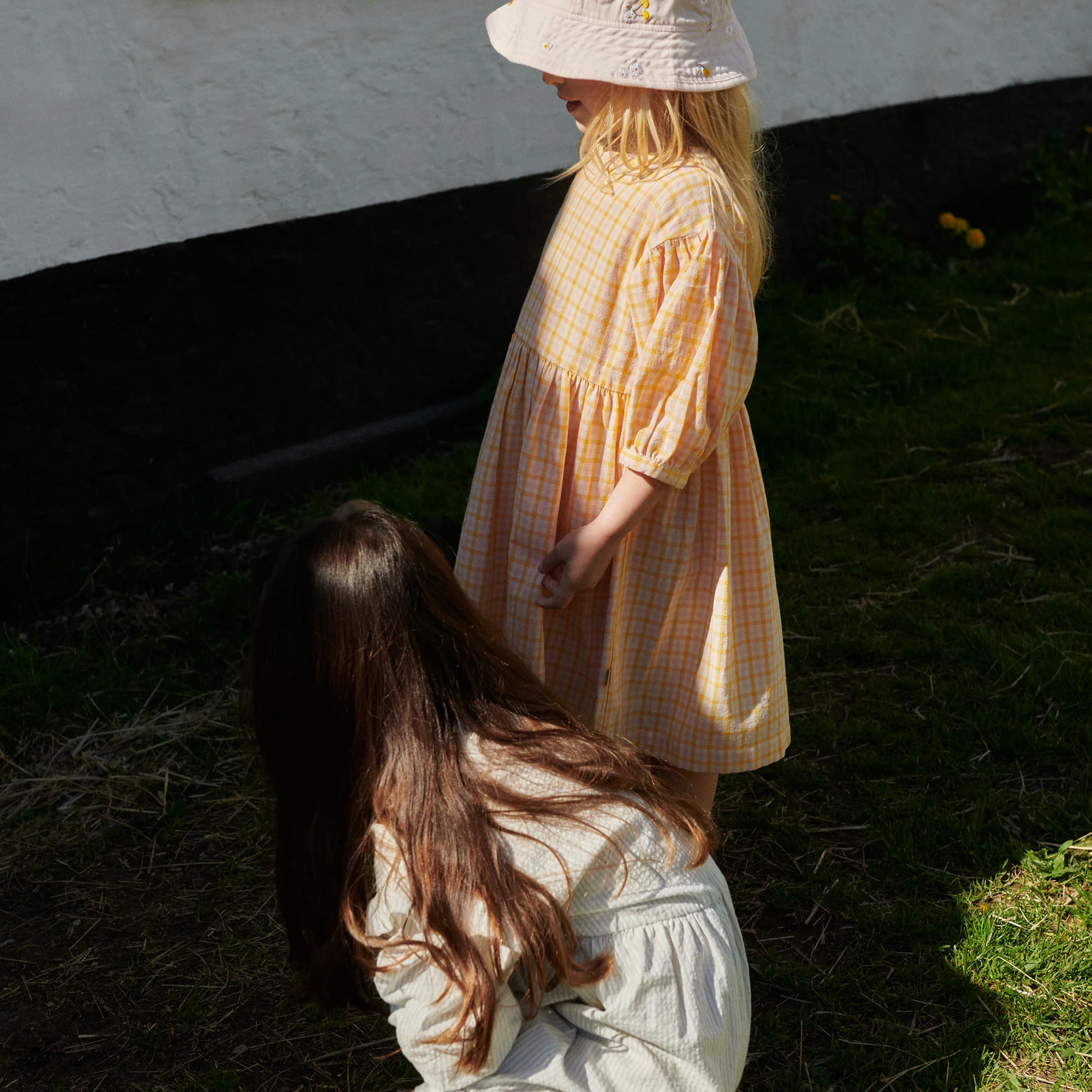 Wil je je grotere meisje laten matchen met haar jongere zusje of nichtje? Van het yellow check patroon hebben we ook een romper beschikbaar!