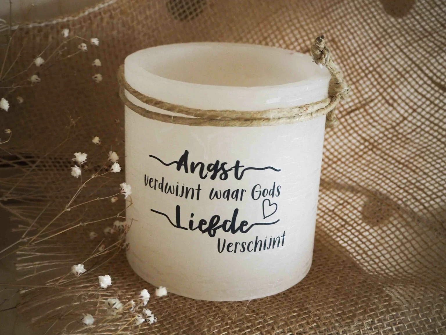 Prachtig decoratief (herbruikbaar) windlicht met christelijke tekst. Met dit windlicht kunt u urenlang genieten van sfeer en licht. Vernieuwd met een nieuw design. Grind en waxinelichtje worden bijgeleverd. Een sieraad voor in je huis! Ook super leuk als cadeautje.