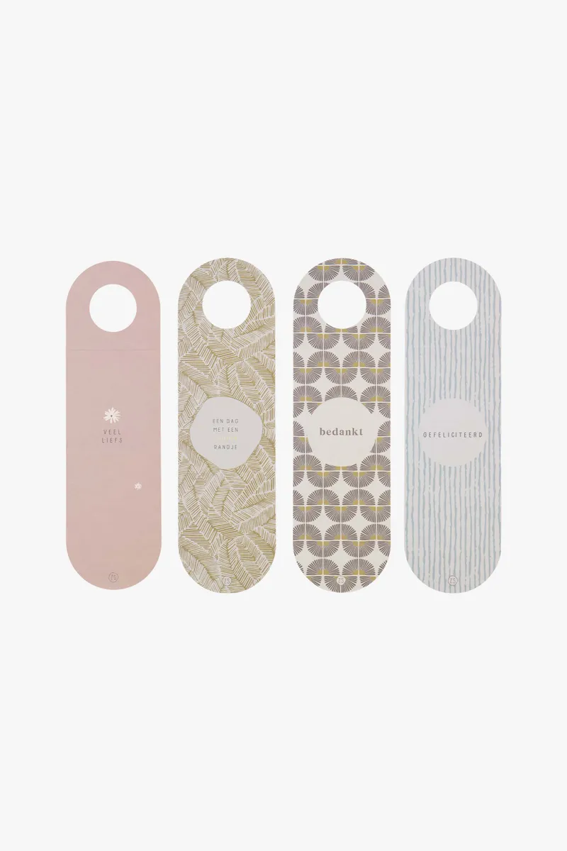Danzij deze flessenhangers van Zusss ziet jouw wijnfles er net even anders uit. Hoe leuk zijn deze om een kadootje wat persoonlijker te maken! In deze set zitten 4 verschillende flessenhangers in verschillende kleuren en prints. De hangers zijn 7×24 centimeter groot. Tip: neem ook een kijkje bij de Zusss schrijfwaren!