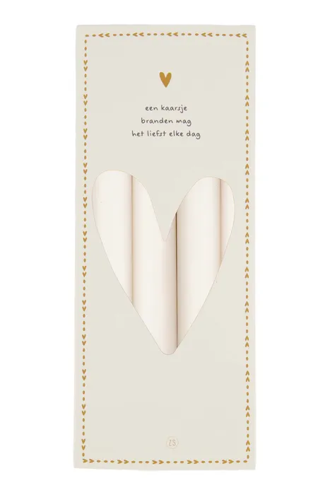 Kaarsen branden is zo fijn, heerlijk om lekker thuis te zijn! Steek de kaarsjes aan en maak het lekker gezellig in huis. In deze verpakking zitten 4 rustieke Zusss kaarsen. Deze zijn off white van kleur en zijn 20×2 centimeter groot. Ze passen in de Zusss kaarsenhouders. Elke kaars heeft ongeveer 11 branduren. Let op: in de kleine kandelaartjes van Zusss passen deze kaarsen niet. Bestel hiervoor een doosje met 10 smalle kaarsjes.