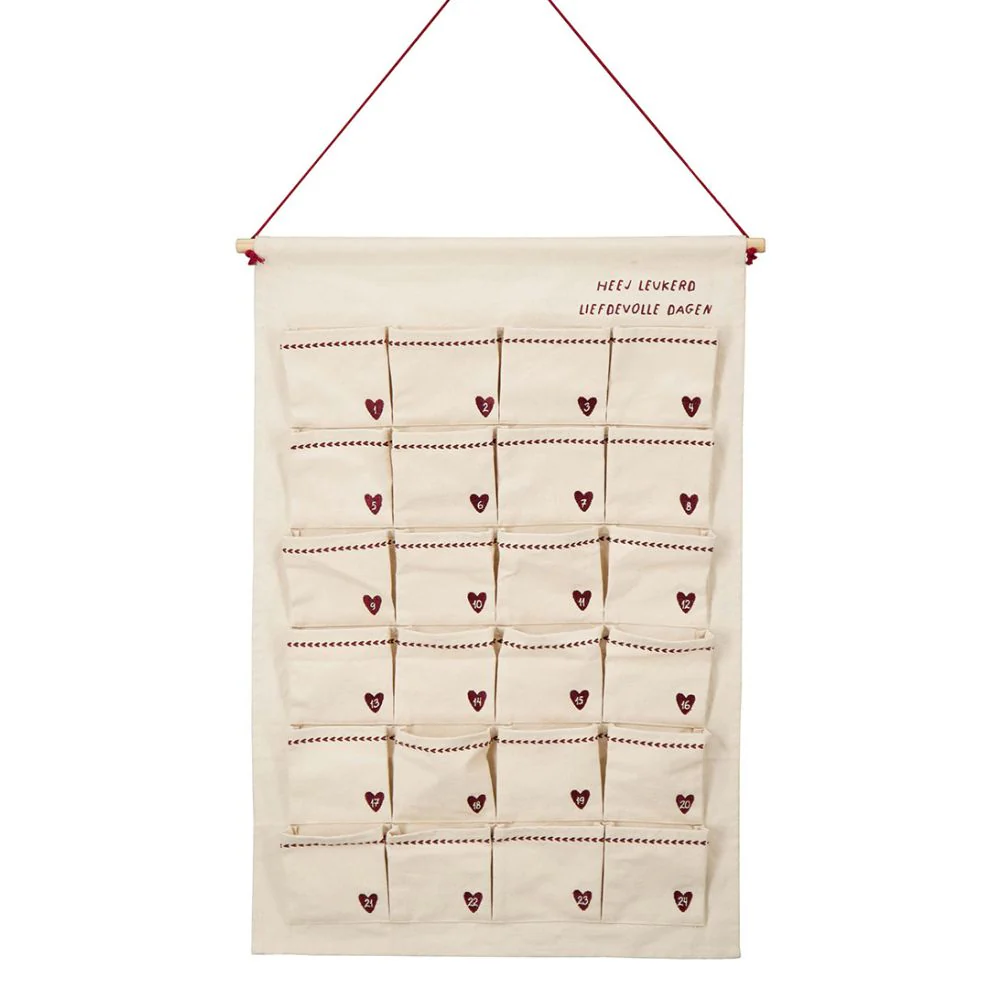 Gemaakt van hoogwaardig katoen, voelt deze kalender heerlijk aan en is duurzaam genoeg om elk jaar opnieuw te gebruiken. Hang hem op een mooie plek in huis en laat de voorpret beginnen. Met elke dag die voorbijgaat, ontdek je nieuwe verrassingen die je in de feeststemming brengen.