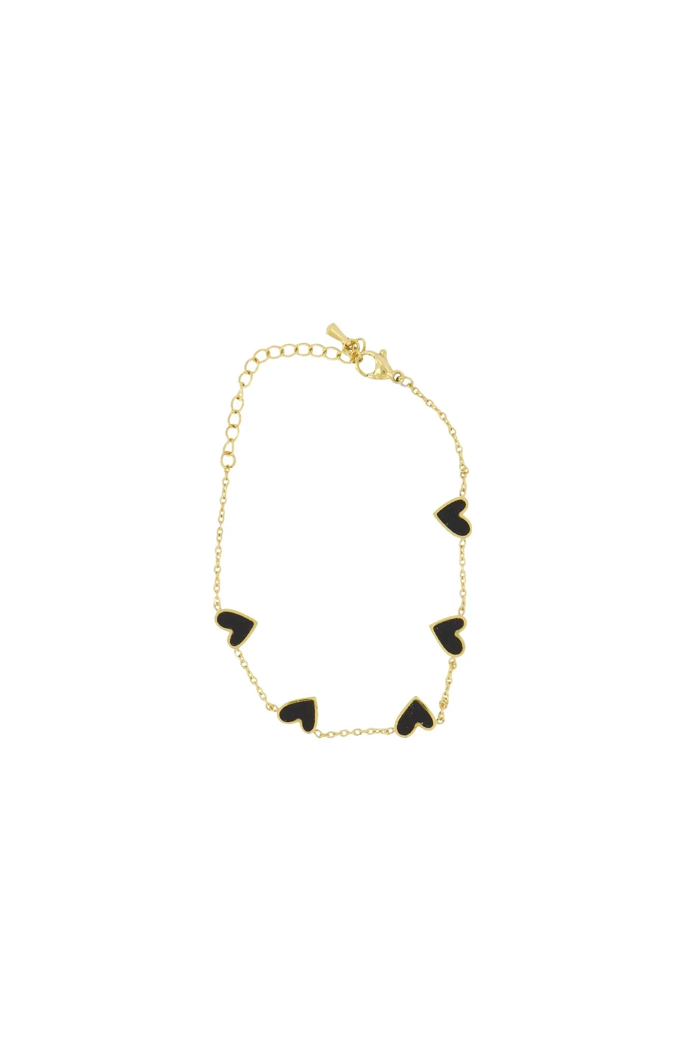 Deze Zusss armband met hartbedel is een fijne toevoeging aan je sieradencollectie. Het subtiele gouden kettinkje heeft vijf kleine hartjes in zwart, wat het sieraad een speels én stijlvol karakter geeft. Draag deze armband solo of combineer ‘m met andere Zusss sieraden voor een persoonlijke touch. Het goud en het zwart maken dit armbandje makkelijk te combineren met verschillende outfits.