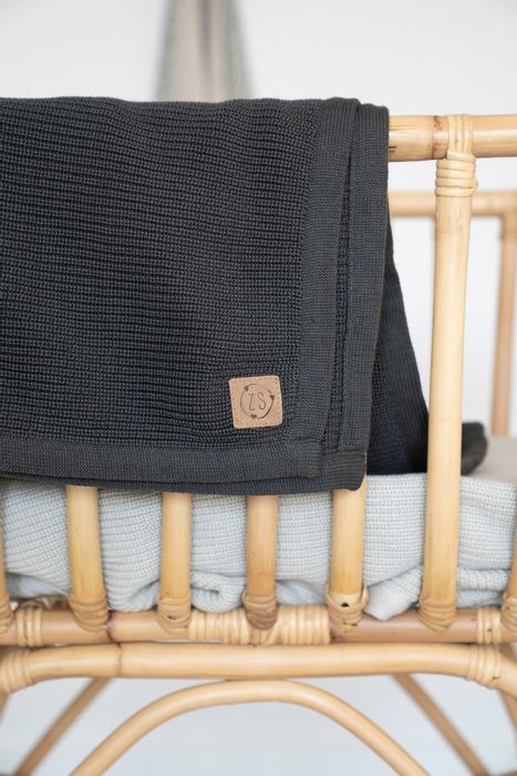 Mooie, gebreide Zusss wiegdeken van grafietgrijs breisel. Het dekentje is 75x100cm groot en is gemaakt van katoen. Je kunt hem wassen op 40 graden, laat hem drogen aan de lucht en we adviseren je om hem niet te strijken. Het dekentje kun je in een standaard wieg van 40x80cm gebruiken, of lekker in de kinderwagen. Op het dekentje staat het speciale Zusss logo van de babycollectie. Meer accessoires voor op de babykamer vind je in de Zusss babycollectie.