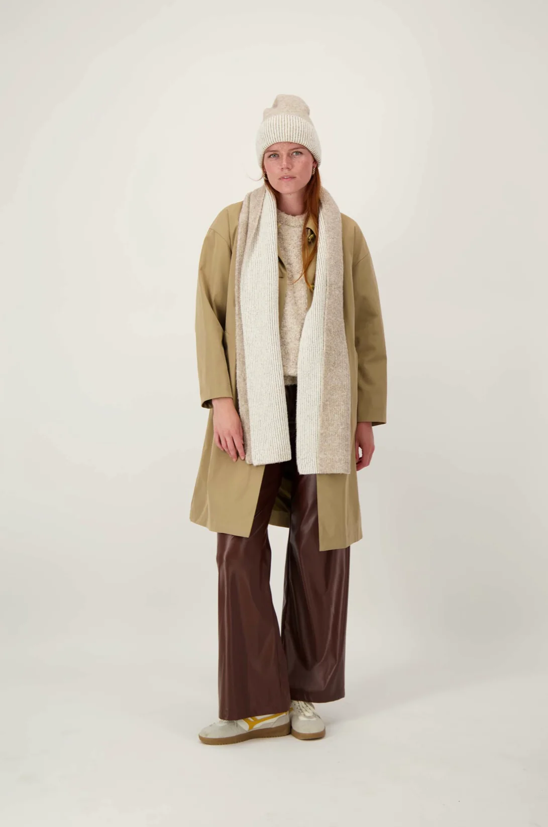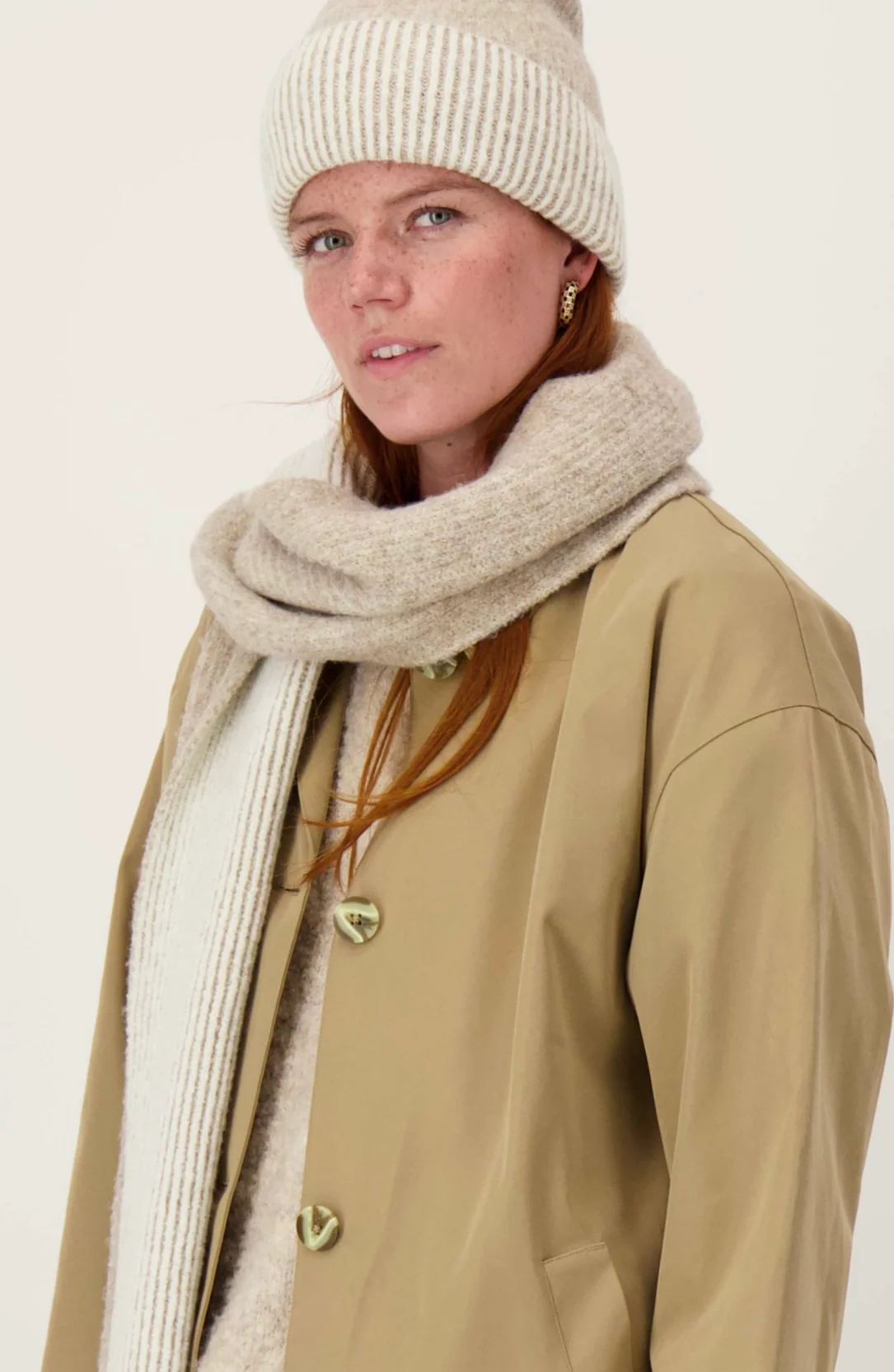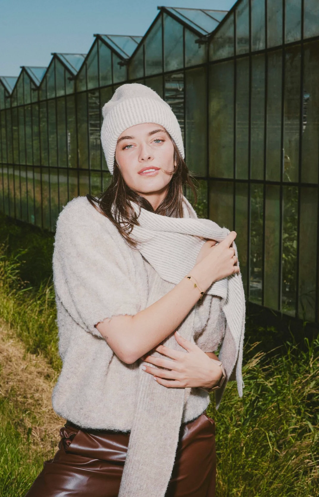 De Zusss gebreide rib sjaal is jouw nieuwe basisaccessoire voor de koudere dagen. Deze sjaal, uitgevoerd in een warme taupe kleur, geeft elke outfit een stoere en natuurlijke uitstraling. De gebreide ribstructuur zorgt voor een fijne textuur en een comfortabele pasvorm. Perfect om mee te combineren uit de sjaals collectie, deze rib sjaal brengt een tikkeltje eigenzinnigheid in je dagelijkse look. De Zusss gebreide rib sjaal is eenvoudig te stylen en houdt je heerlijk warm.