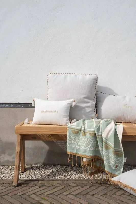 ZUSSS HAMAMDOEK STREEP 180X100CM SALIEGROEN/WIT