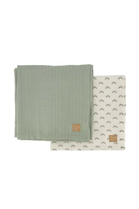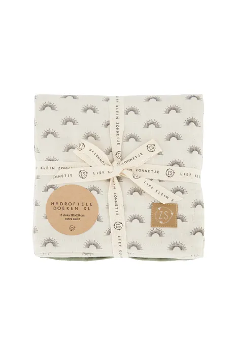 Hydrofiele doeken kun je nooit genoeg in huis hebben wanneer er een baby’tje is. Je kunt de doeken voor meerdere doeleinden gebruiken. Bijvoorbeeld voor het afdrogen na een badje, maar de doeken kunnen ook dienen als spuugdoek of als lakentje. Echte musthaves! Wat daarom ook fijn is aan deze doeken is dat ze lekker groot zijn, namelijk 110×110 centimeter. Een van de doeken is zandkleurig en is voorzien van een zonnetjesprint. De andere doek is saliegroen van kleur. Deze zijn gemaakt van 100% katoen en beide voorzien van een labeltje met het Zusss logo erop.