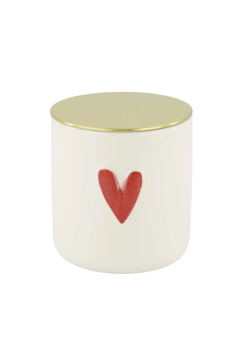 Dit Zusss kaarsje straalt liefde uit en laat je huis heerlijk ruiken. Op het witte keramiek staat een rood hartje. Met het deksel kun je de geurkaars afsluiten, ideaal! Het formaat van deze geurkaars is 10x11cm. Ook erg leuk als kado!