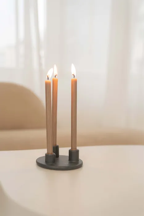 keramieken kandelaar voor 3 smalle kaarsjes antracietgrijs