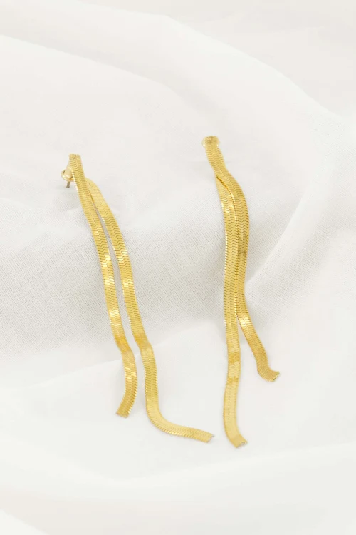 Deze oorbellen van Zusss zijn zo gaaf! De gouden oorhangers zijn 8,5cm lang en hebben een visgraat structuur. Wat een leukerds! Deze lange oorbellen zijn gemaakt van stainless steel en verkleurden hierdoor niet. Met deze leuke dingen val jij op! Ook leuk om kado te geven!