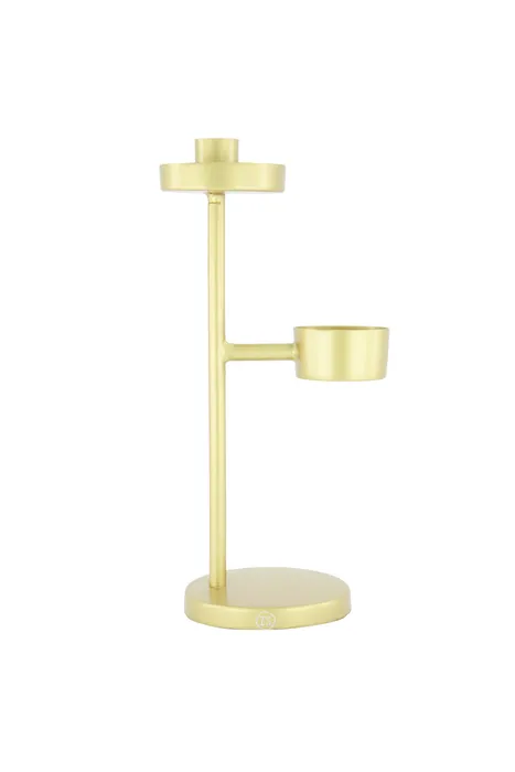 Breng de gezelligheid in huis met deze metalen kandelaar van Zusss. Deze kandelaar is goud en heeft een Zusss logo op de voet staan. Het is mogelijk om een waxinelichtje en een klein rustiek kaarsje in de kandelaar te plaatsen. Zo wordt het nog gezelliger in huis! De kandelaar is 25 centimeter hoog en heeft een doorsnede van negen centimeter. Combineer deze kandelaar met andere kandelaars van Zusss.