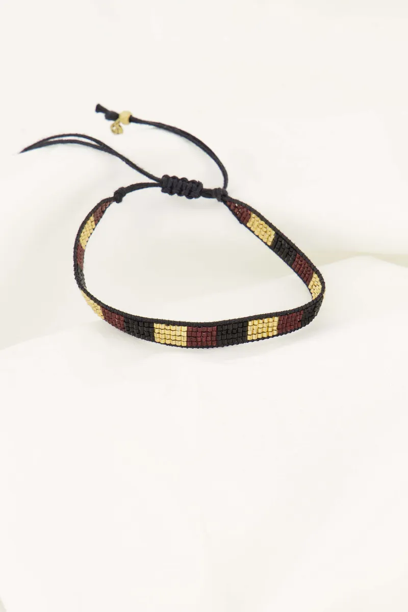 Zusss Miyuki Armbandje – Streepje Port/Goud/Zwart