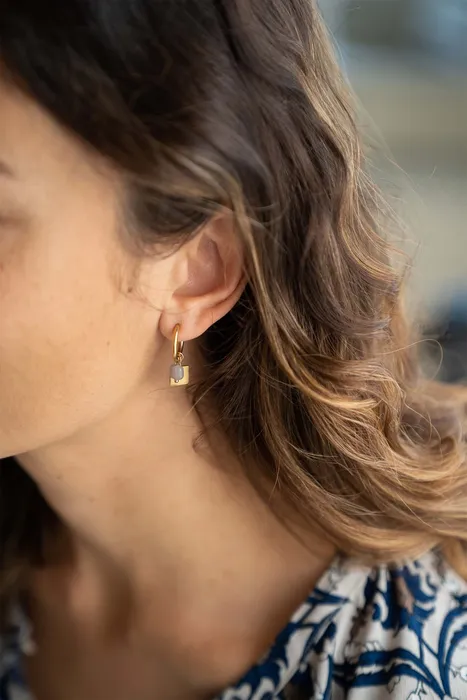 Met deze oorbellen van Zusss steel jij zeker de show! De combinatie van een goud en leverkleurig hangertje creeren een leuk, speels effect. Het gouden hangertje is in de vorm van een vierkantje en het stenen kraaltje is leverkleurig. Mix en match met andere mooimakers en jouw look is compleet!