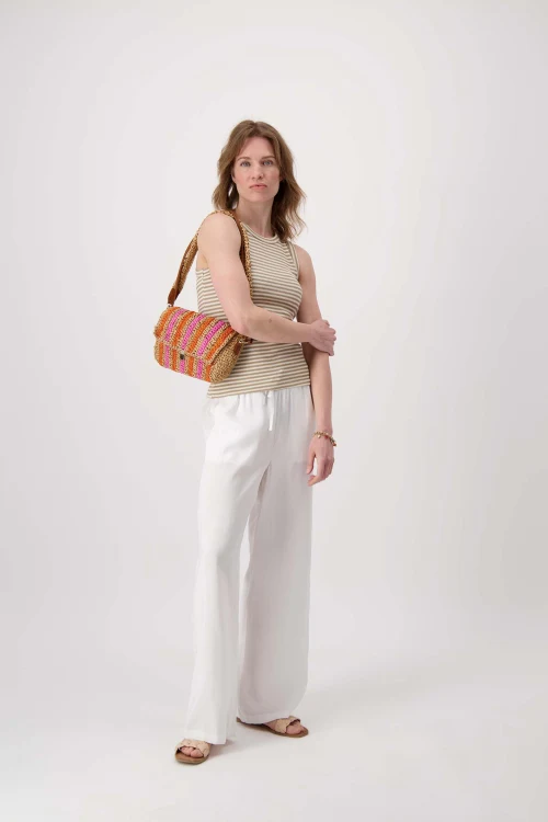 Zusss Raffia Schoudertas met Streep – Roze/Oranje