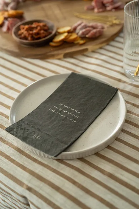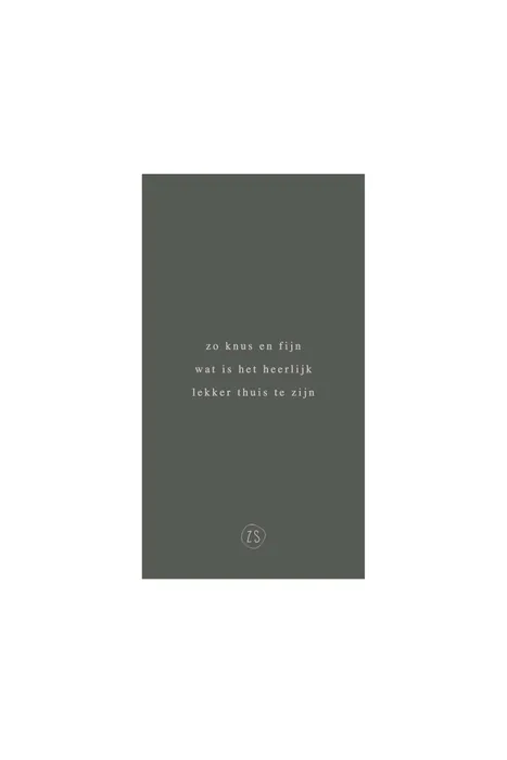 Gezellige Zusss servetten voor een mooi gedekte tafel. Deze servetten heeft een antracietgrijze kleur en is voorzien van een leuke Zusss tekst: zo knus en fijn, wat is het heerlijk lekker thuis te zijn. Onderaan staat het Zusss logo afgebeeld. De servetten worden geleverd in een pakje en zijn 11×20 centimeter groot. Met deze servetten stijl je jouw tafel helemaal af!