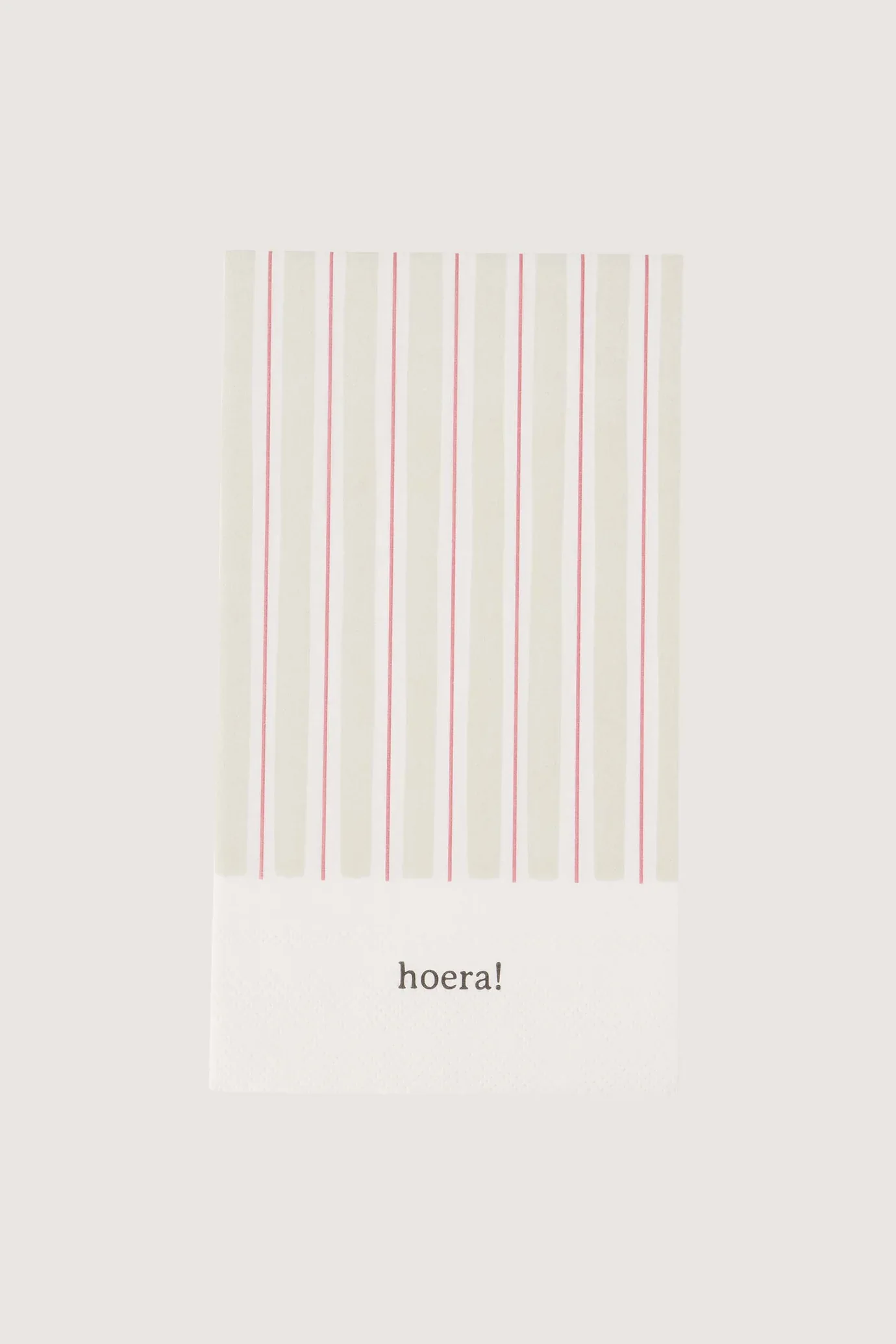 Deze Zusss servetten met streep en hoera tekst zijn perfect voor elke feestelijke gelegenheid. De servetten zijn gemaakt van hoogwaardig kwaliteit papier en hebben een stijlvolle zandkleur met rode strepen. De rechthoekige servetten meten 25×25 cm, ideaal voor borrels en diners. De combinatie van de rustige zandtint met het vrolijke rood en de ‘hoera!’ tekst maakt deze servetten een blikvanger op elke tafel