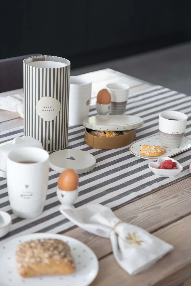 Met deze Zusss tafelloper maak je een feestje van jouw tafel! De tafelloper is zand en grafietgrijs gestreept. Onderaan staat subtiel het Zusss logo. Deze tafelloper is gemaakt van 100% katoen. Dit item heeft een formaat van 250×50 centimeter. Kijk ook eens tussen het Zusss servies, er is vanalles!