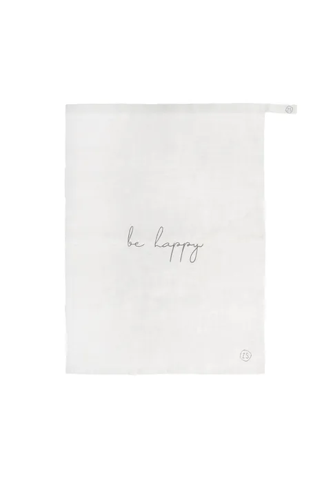 Met deze Zusss theedoek wordt afwassen net iets leuker. De theedoek is peper en zout van kleur en voorzien van een leuke tekst, be happy. Onderaan staat het Zusss logo afgebeeld. De theedoek is 50×70 centimeter groot. Gemaakt van 100% katoen. Aan de theedoek zit een handig lusje verwerkt waaraan je ‘m kunt ophangen. Tip: Mix en match de Zusss theedoeken met handdoeken en meer leuke keukentextiel.