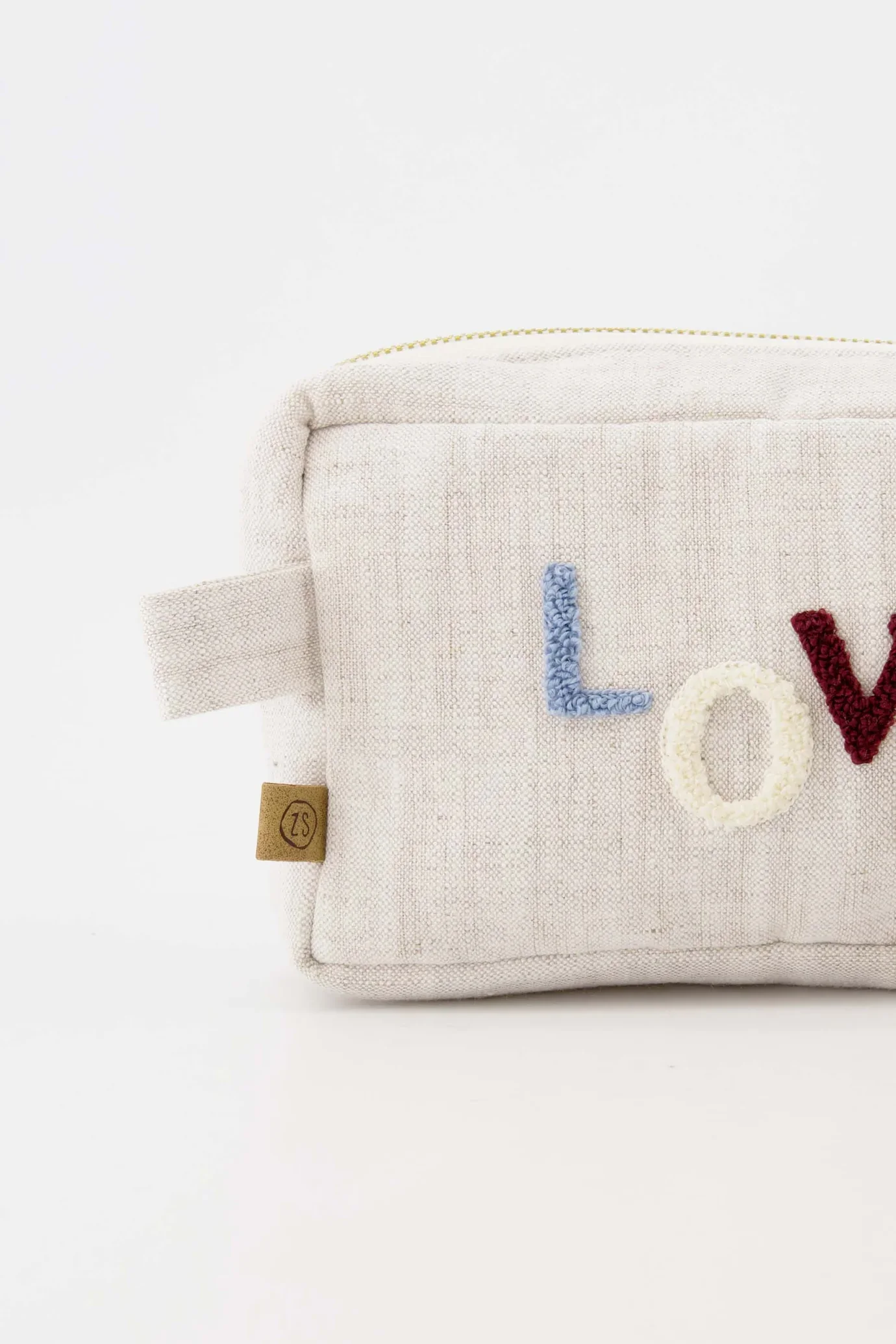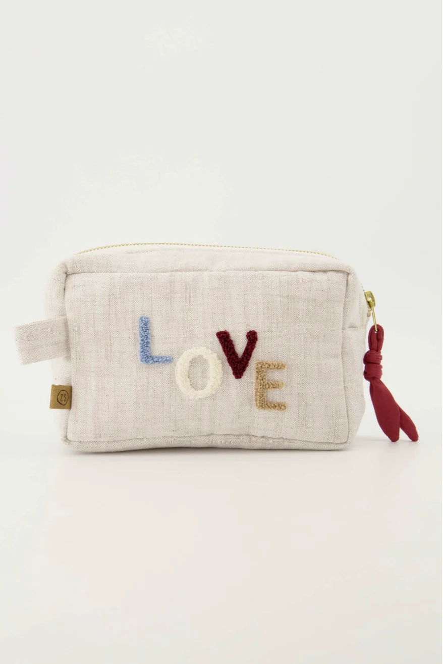 De Zusss toilettas love past perfect in jouw badkamer met zijn warme, zachte uitstraling. Deze toilettas love combineert een natuurlijke, peper en zout kleur met een fijne textuur en speelse geborduurde letters die het woord “love” vormen. De rits met knoopdetail maakt ‘m makkelijk te gebruiken en netjes af te sluiten. Deze toilettas love is ideaal om jouw essentials georganiseerd en binnen handbereik te houden. Met zijn rustige kleuren en subtiele details voegt hij warmte toe aan je dagelijkse routine.