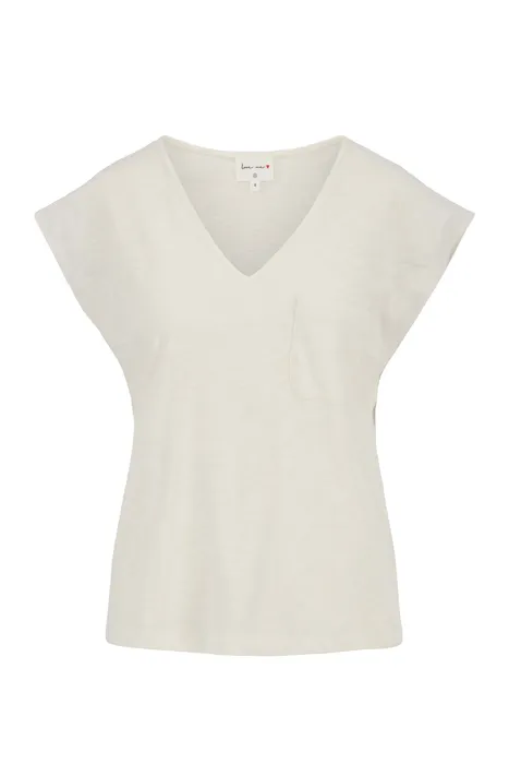 Deze top slub van Zusss is o-zo fijn! De top is off white van kleur en daardoor te combineren met werkelijk iedere kleur! Een leuk detail is het zakje op de borst. De top heeft korte mouwen en een V-hals. Draag ‘m bijvoorbeeld op een wijde broek of zwierige rok. Dit item is gemaakt van 100% katoen.