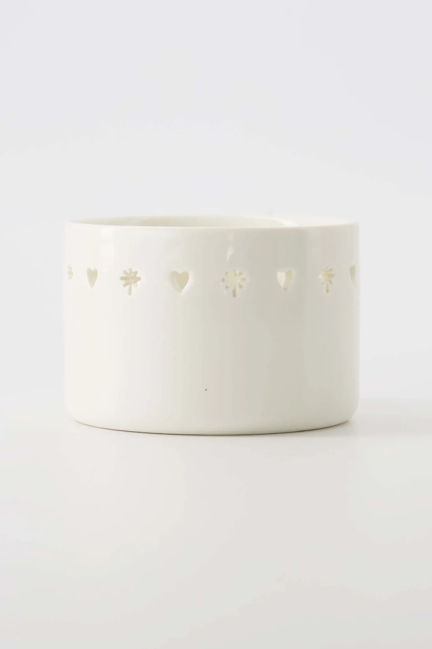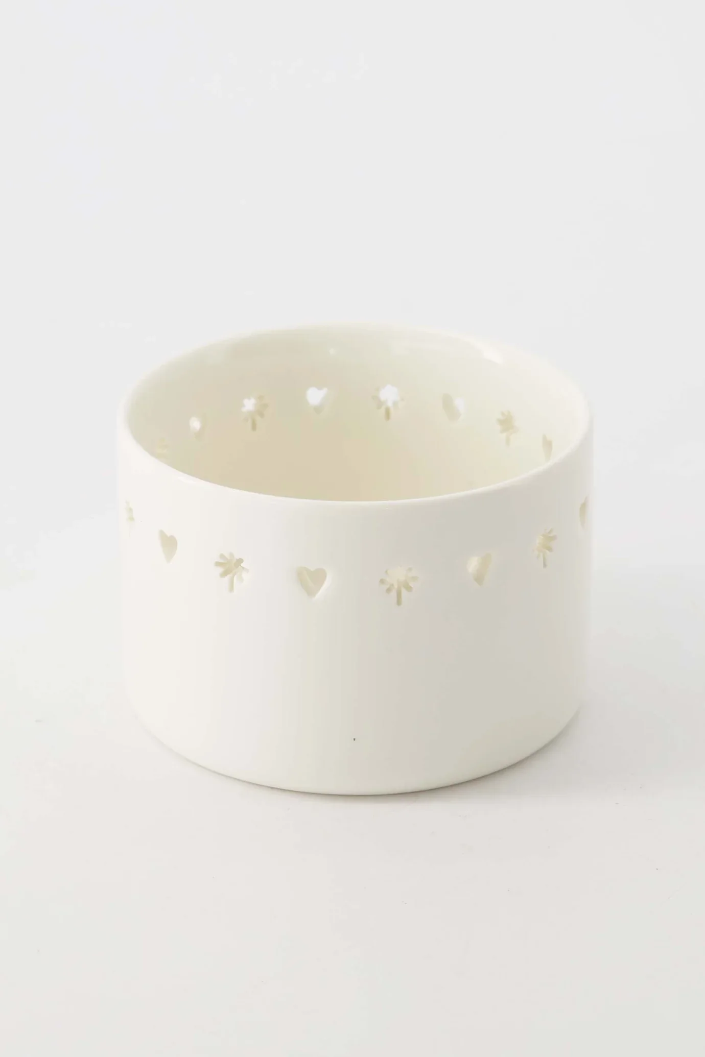 Deze Zusss keramiek waxinelichthouder brengt warmte in huis met een subtiel hart- en sterpatroon. De waxinelichthouder is uitgevoerd in wit keramiek, wat zorgt voor een rustige, lichte uitstraling. Perfect om kaarslicht zacht te laten schijnen en een gezellige sfeer te creëren in jouw woonkamer of eetkamer. De eenvoudige, ronde vorm maakt het een tijdloze woonaccessoire die makkelijk te combineren is met jouw interieur. Voeg deze charmante waxinelichthouder toe voor dat fijne, warme lichtmomentje.