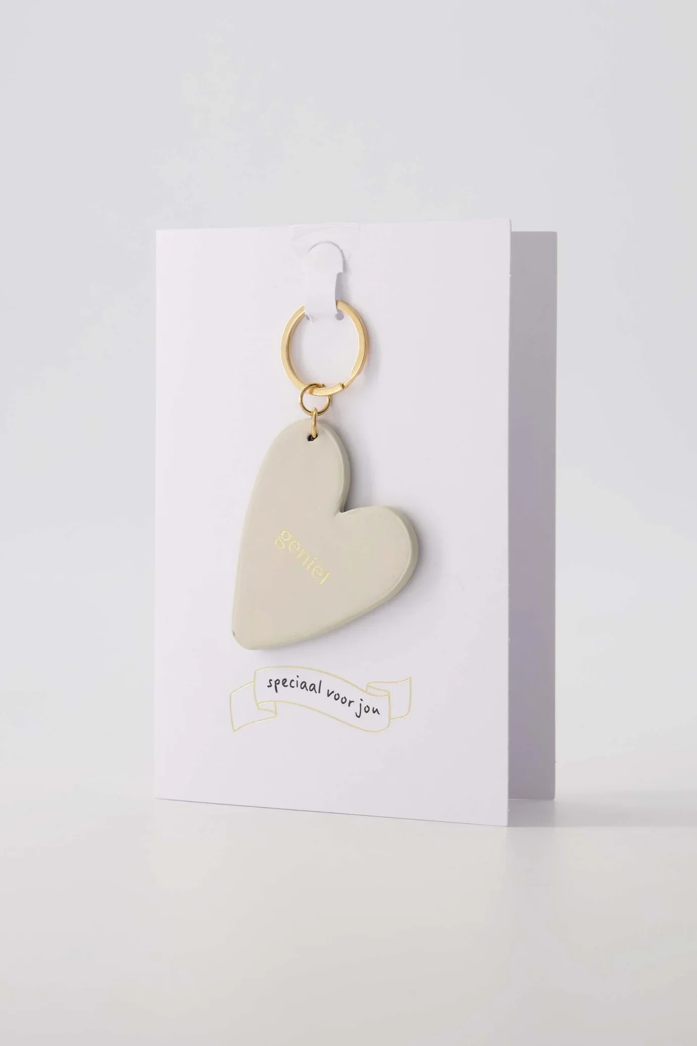 De Zusss sleutelhanger met wenskaart is een fijne manier om iemand te verrassen. Deze sleutelhanger, met het woord geniet subtiel goud gedrukt, heeft een zachte zandkleur die warmte uitstraalt. Een kleine, persoonlijke boodschap in combinatie met een praktische sleutelhanger maakt het een charmante attentie. De combinatie van wenskaart en sleutelhanger zorgt voor een blijvende herinnering waar je keer op keer plezier van hebt. Perfect om mee te geven bij een speciaal moment, want een Zusss sleutelhanger met wenskaart past altijd.